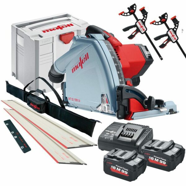 Mafell MT55 18v Cordless Plunge Saw Kit is a totally unique sawing system that allows the user to Crosscut, Mitre, Compound mitre, Plunge and cut panels, all in one handy box.