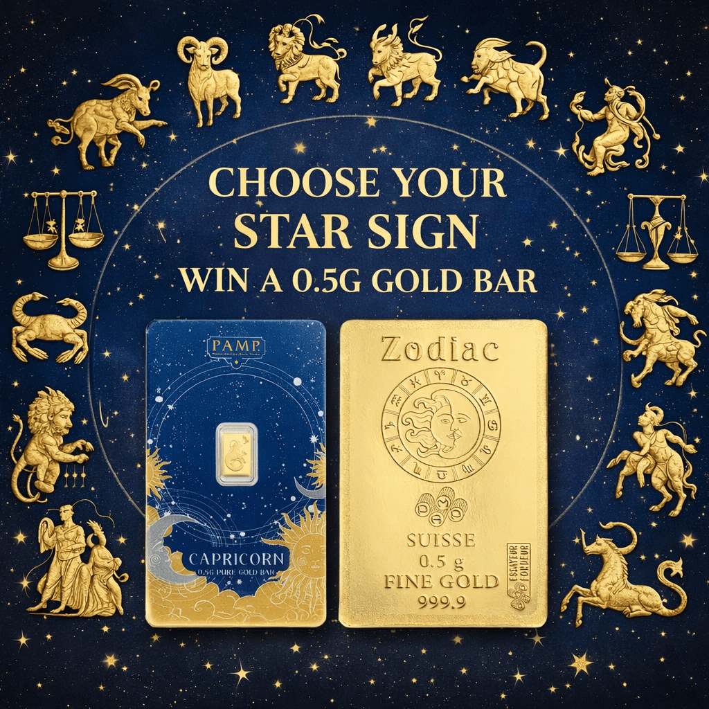 Discover the brilliance of 999.9 fine gold with these premium Zodiac bars, crafted in Switzerland and proudly PAMP-branded. Each bar is sealed in a uniquely designed CertiPAMP card, featuring vibrant, collectible artwork inspired by the twelve zodiac signs – making them as meaningful as they are beautiful. The zodiac calendar originates from ancient astrology and is divided into twelve signs, each corresponding to a specific time frame and associated with unique personality traits. The signs are Aries, Taurus, Gemini, Cancer, Leo, Virgo, Libra, Scorpio, Sagittarius, Capricorn, Aquarius, and Pisces. The zodiac is widely used in astrology to interpret personality, relationships, and even predict future events.