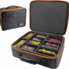 RELIABLE STRUCTURE AND MATERIAL: The case box has a high-quality 1080D Oxford cloth exterior and a hard ABS plastic interior, waterproof and easy to clean, ensuring your batteries stay safe from water and debris. The dense foam interior and adjustable cardboard dividers enhance durability and can withstand rough handling during travel or transportation. The case is also shockproof and can protect your tools from drops and falls.