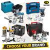 The router/trimmer includes a powerful brushless motor produces a max 10,000-30,000rpm no load speed, 6mm & 8mm (1/4″) collect capacity, 0.40mm plunge capacity with trimmer base.