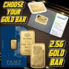 The 2.5 gram gold bar is made by PAMP, a well known producer of Swiss gold bars based in the canton of Ticino.