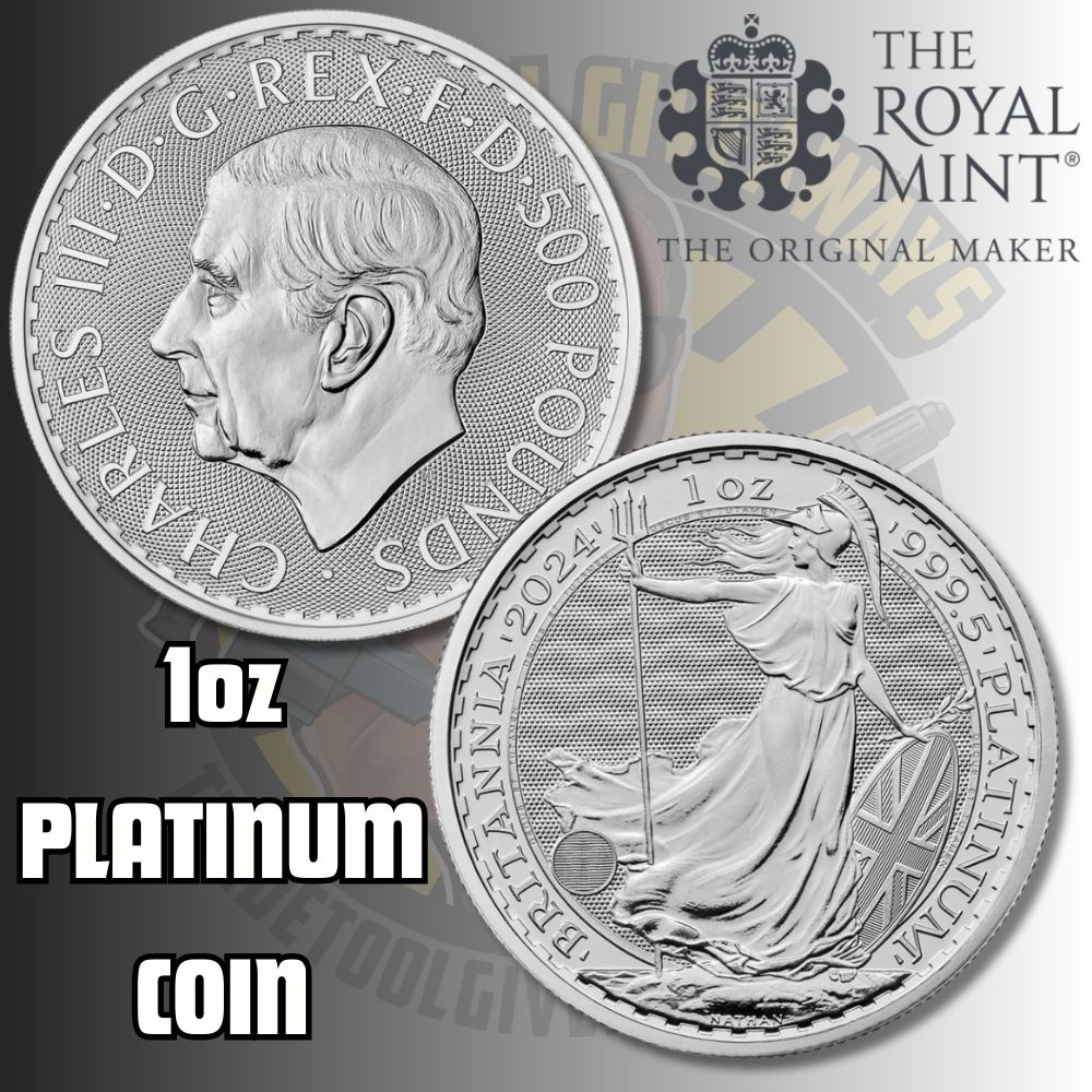 The obverse features the portrait of His Majesty King Charles III by Martin Jennings. The 2024 Britannia 1oz platinum coin is legal tender in the UK, with a face value of £100 making it exempt from CGT.