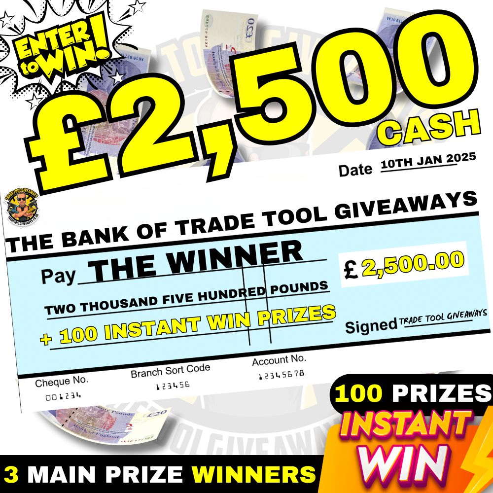 This competition is open to UK residents aged 18 or over. You may enter this competition up to 500 times. You will be randomly allocated ticket number(s) when ordering and will receive an email confirmation. The total amount of tickets for this competition is (5000). If all tickets do not sell out, the draw will happen on January 10, 2025 regardless. You must answer the competition question correctly to be entered into the live draw. Incorrect entries will not be notified or entered into the live draw. You may enter the competition online, or for free by post by sending your entry to Trade Tool Giveaways on a postcard. You must have an account on Trade Tool Giveaways for your entry to be processed. All details on your entry MUST correspond to the details on your account to receive the order confirmation and ticket number. Postal entries received without a registered account cannot be processed. The live draw will take place on Trade Tool Giveaways Facebook page using Google’s random number generator to select the winning ticket number from all Entrants. This competition is in no way sponsored, endorsed, administered by or associated with Facebook, Apple or Google. By entering the competitions, Entrants agree that neither Facebook, Apple nor Google have any liability and are not responsible for the administration or promotion of this competition.