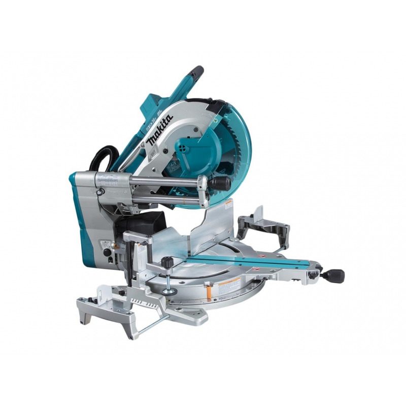 The Makita 18Vx2 305mm Slide Compound Mitre Saw Bare Unit is ideal for professional and DIY use as it can supply similar power than a corded machine. Its brushless motor also ensures it doesn’t compromise power when under load. The electric brake is a safety feature that is ideal in busy work places and the soft start function helps to provide a clean smooth cut that, with help from the laser line function is straight and precise. Designed for work on all sizes, it has holders to support a wide workpiece and a large turn base. The single sliding system enables smooth operation to produce superior cuts and the clever AWS technology means it connects to compatible dust extractors via bluetooth. It has a front knob that makes bevel adjustment easy and an easy-to-operate mitre angle lock. Bare unit, not supplied with batteries or charger.