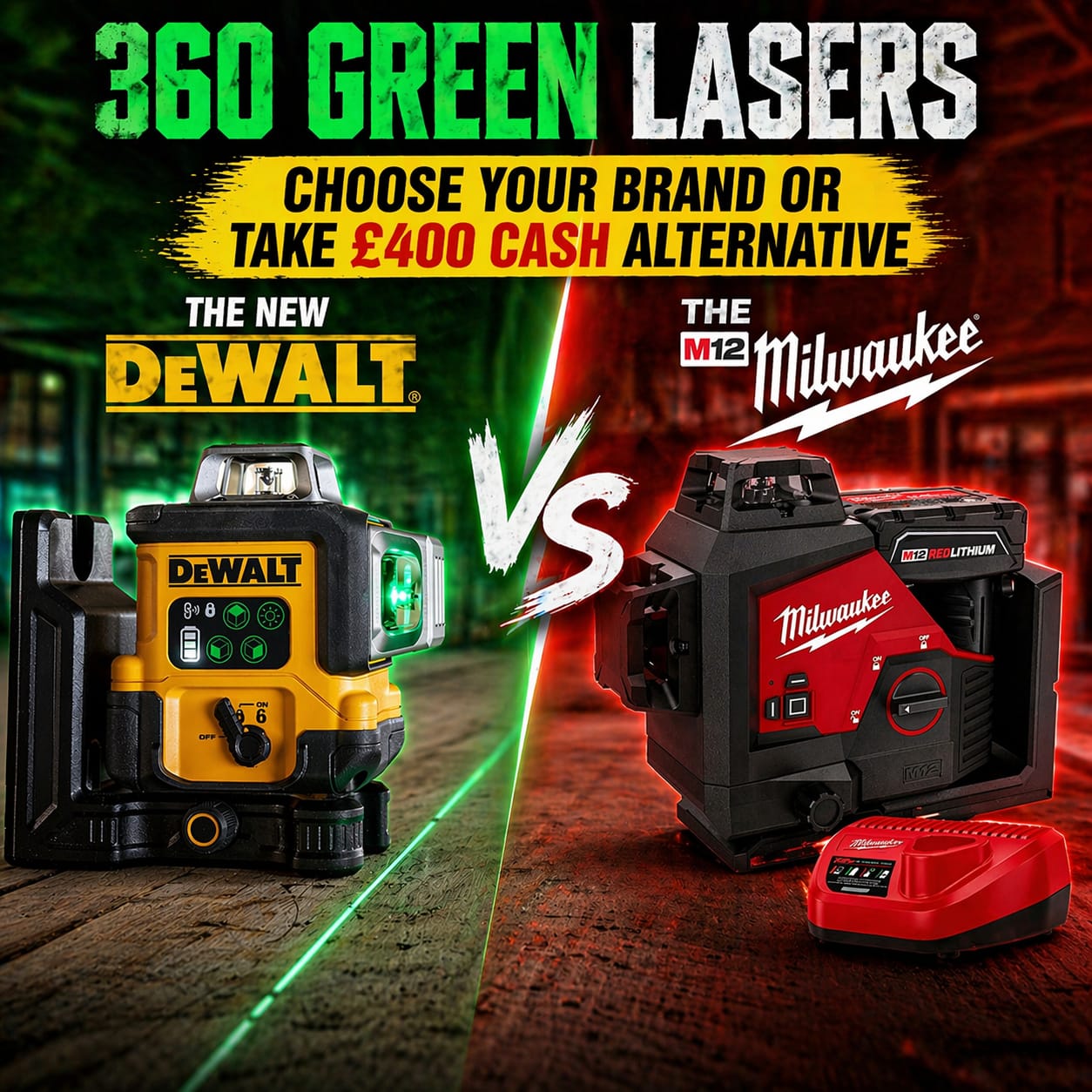 M12™ Green 360° 3 Plane Laser provides you with all day runtime and best visibility in its class.