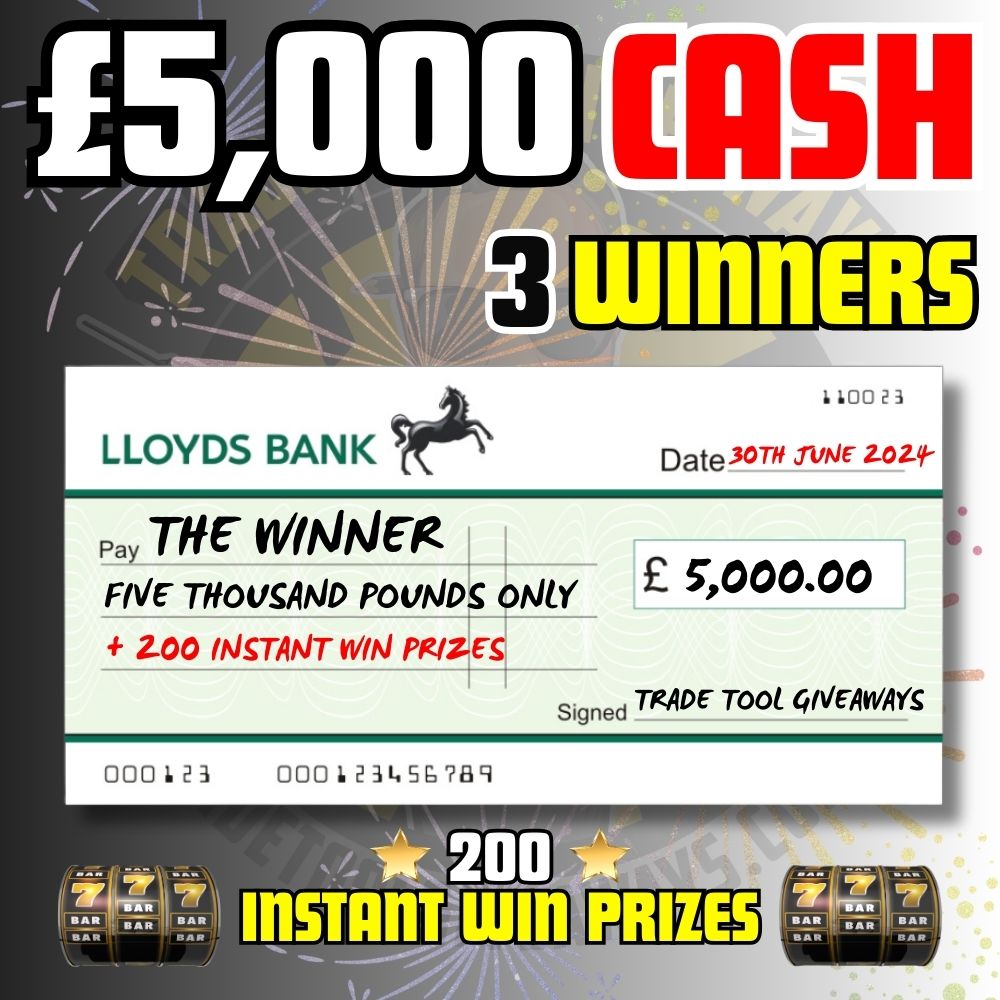 This competition is open to UK residents aged 18 or over. You may enter this competition up to 400 times. You will be randomly allocated ticket number(s) when ordering and will receive an email confirmation. The total amount of tickets for this competition is (5000). If all tickets do not sell out, the draw will happen on June 30, 2024 regardless. You must answer the competition question correctly to be entered into the live draw. Incorrect entries will not be notified or entered into the live draw. You may enter the competition online, or for free by post by sending your entry to Trade Tool Giveaways on a postcard. You must have an account on Trade Tool Giveaways for your entry to be processed. All details on your entry MUST correspond to the details on your account to receive the order confirmation and ticket number. Postal entries received without a registered account cannot be processed. The live draw will take place on Trade Tool Giveaways Facebook page using Google’s random number generator to select the winning ticket number from all Entrants. This competition is in no way sponsored, endorsed, administered by or associated with Facebook, Apple or Google. By entering the competitions, Entrants agree that neither Facebook, Apple nor Google have any liability and are not responsible for the administration or promotion of this competition.