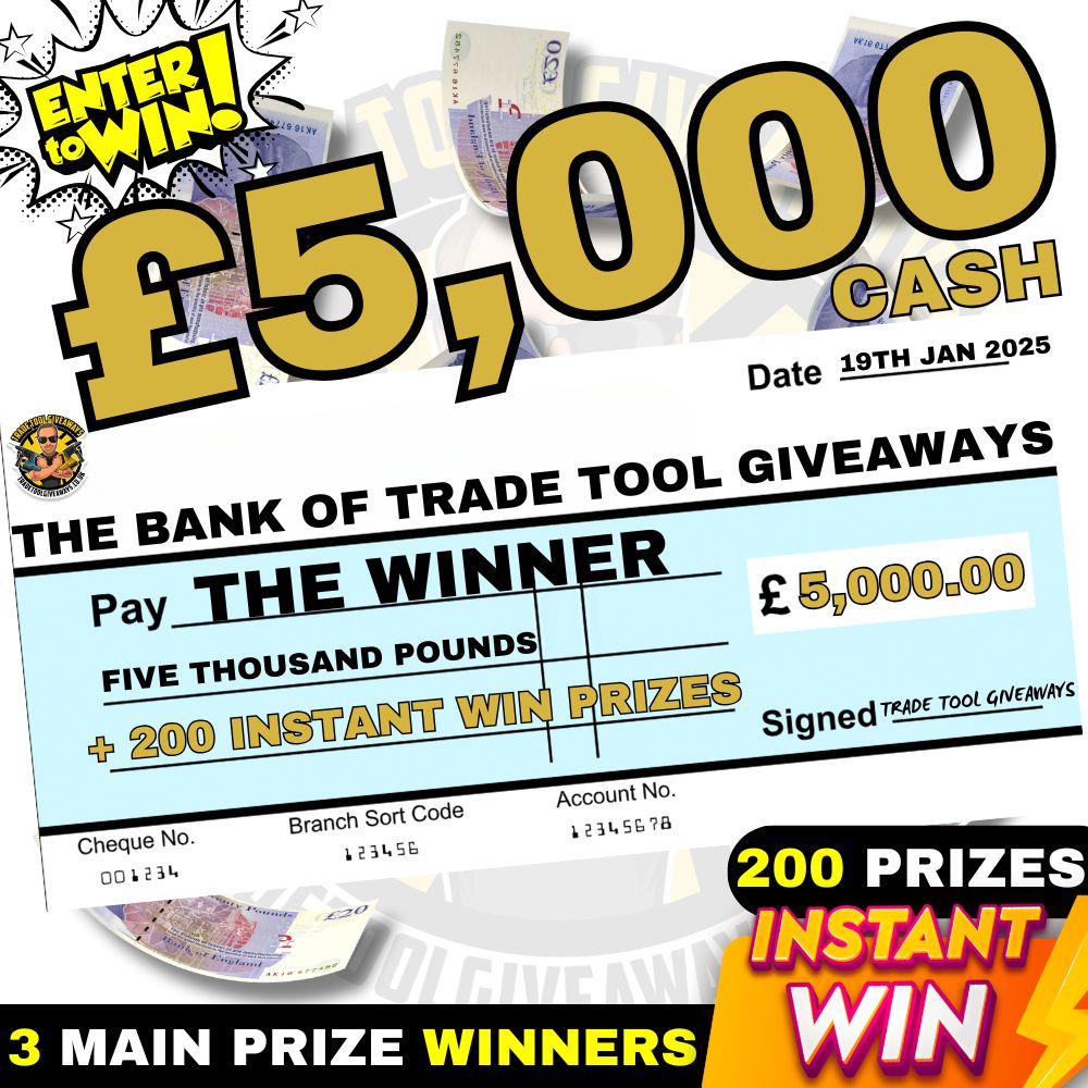 This competition is open to UK residents aged 18 or over. You may enter this competition up to 400 times. You will be randomly allocated ticket number(s) when ordering and will receive an email confirmation. The total amount of tickets for this competition is (5000). If all tickets do not sell out, the draw will happen on January 7, 2025 regardless. You must answer the competition question correctly to be entered into the live draw. Incorrect entries will not be notified or entered into the live draw. You may enter the competition online, or for free by post by sending your entry to Trade Tool Giveaways on a postcard. You must have an account on Trade Tool Giveaways for your entry to be processed. All details on your entry MUST correspond to the details on your account to receive the order confirmation and ticket number. Postal entries received without a registered account cannot be processed. The live draw will take place on Trade Tool Giveaways Facebook page using Google’s random number generator to select the winning ticket number from all Entrants. This competition is in no way sponsored, endorsed, administered by or associated with Facebook, Apple or Google. By entering the competitions, Entrants agree that neither Facebook, Apple nor Google have any liability and are not responsible for the administration or promotion of this competition.