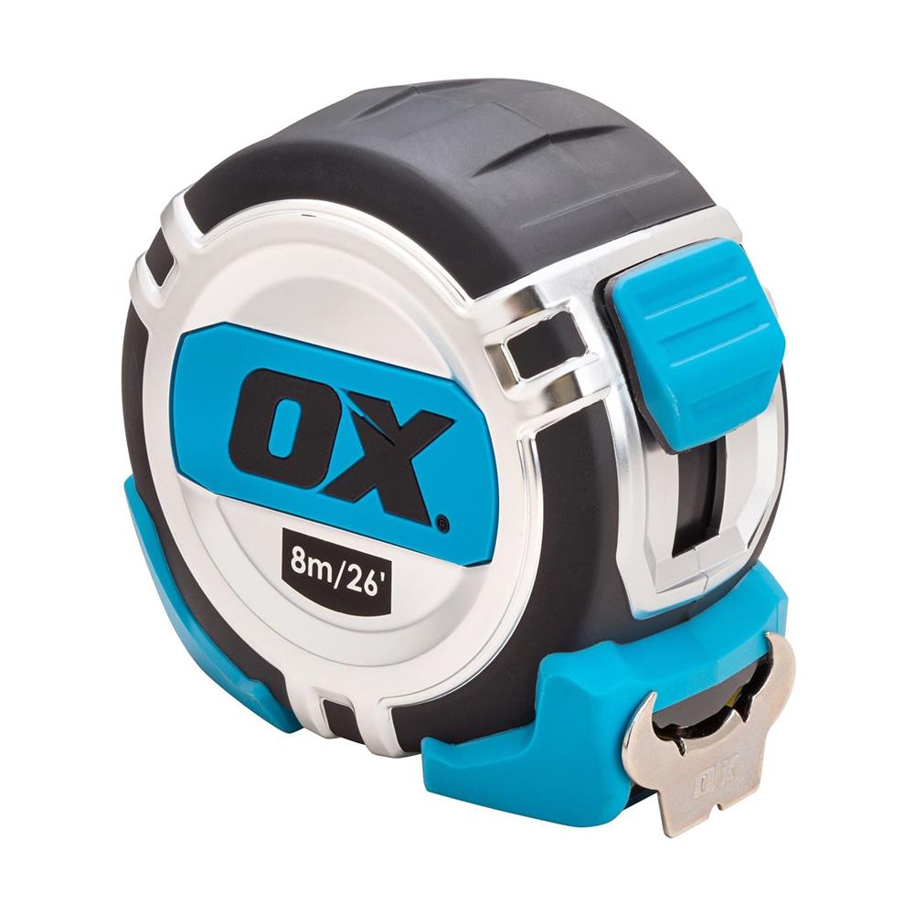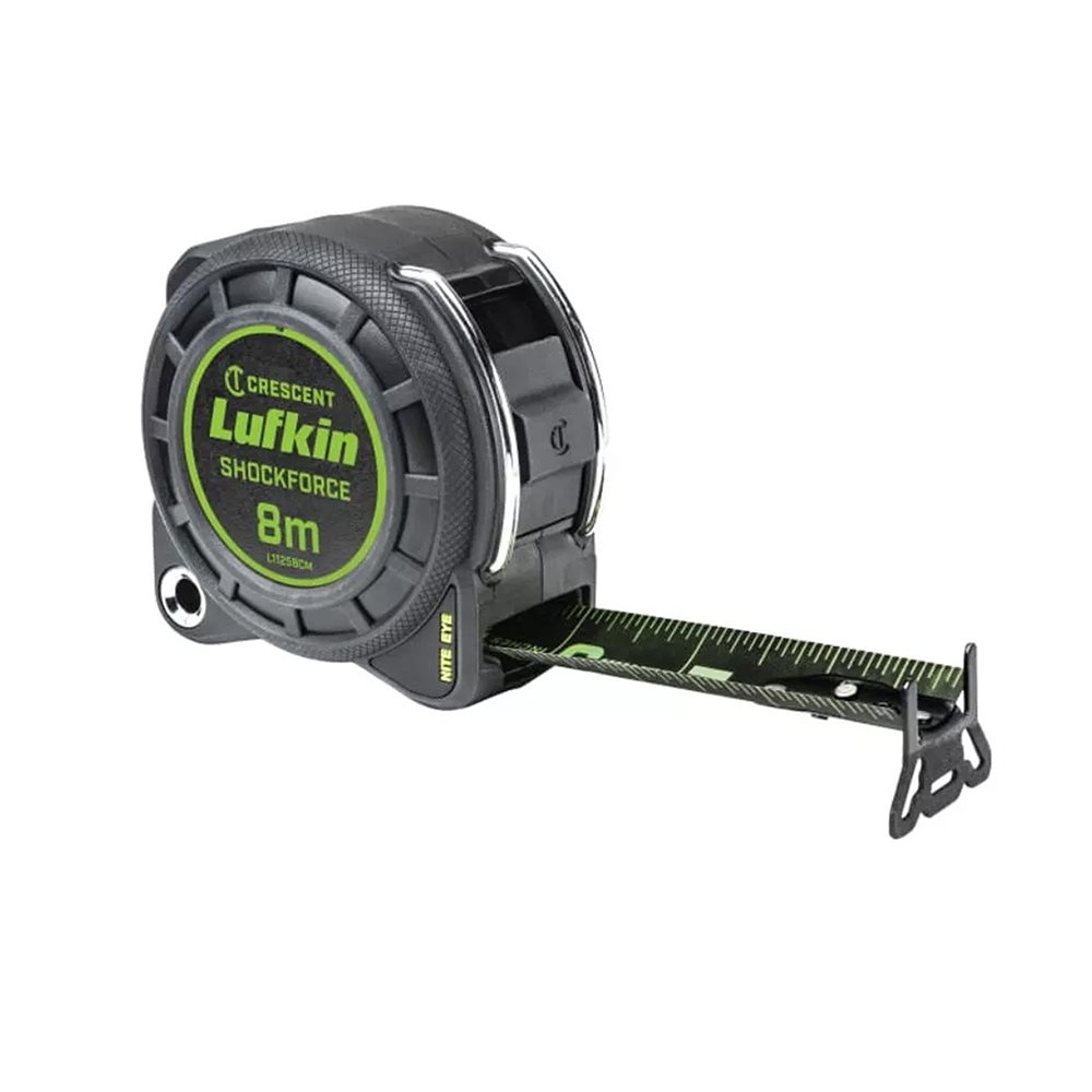 The Komelon 8m / 26ft PowerBlade Tape has a dura NY nylon coated steel dual printed blade with vertical blade markings on the reverse and patented hi-vis blade printing. The Dura NY nylon coating offers superior quality that lasts up to 15 times longer.