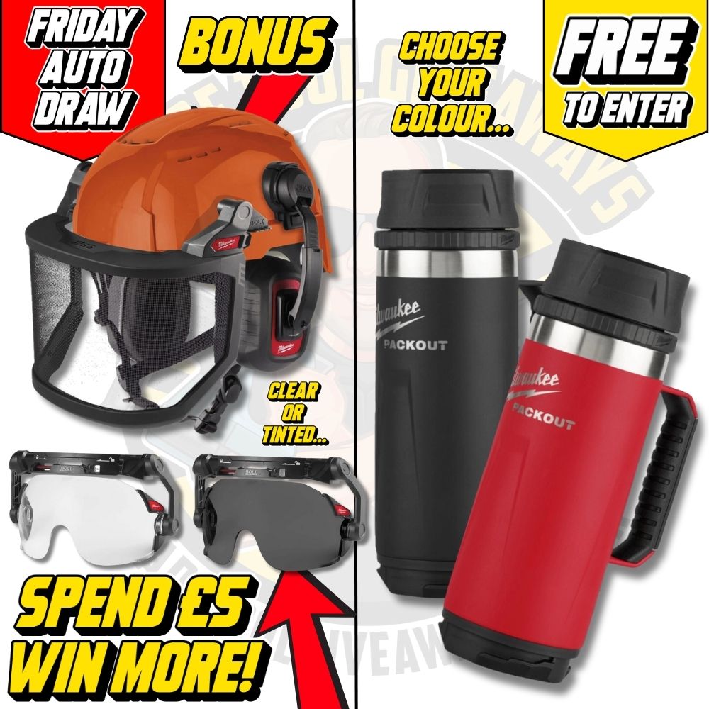 This competition is open to UK residents aged 18 or over. You may enter this competition up to 10 times. You will be randomly allocated ticket number(s) when ordering and will receive an email confirmation. The total amount of tickets for this competition is (5000). If all tickets do not sell out, the draw will happen on September 5, 2025 regardless. You must answer the competition question correctly to be entered into the live draw. Incorrect entries will not be notified or entered into the live draw. You may enter the competition online, or for free by post by sending your entry to Trade Tool Giveaways on a postcard. You must have an account on Trade Tool Giveaways for your entry to be processed. All details on your entry MUST correspond to the details on your account to receive the order confirmation and ticket number. Postal entries received without a registered account cannot be processed. The live draw will take place on Trade Tool Giveaways Facebook page using Google’s random number generator to select the winning ticket number from all Entrants. This competition is in no way sponsored, endorsed, administered by or associated with Facebook, Apple or Google. By entering the competitions, Entrants agree that neither Facebook, Apple nor Google have any liability and are not responsible for the administration or promotion of this competition.