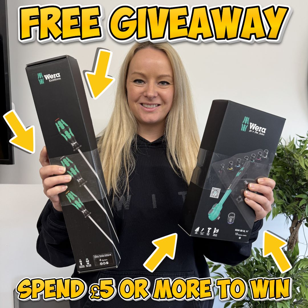This competition is open to UK residents aged 18 or over. You may enter this competition up to 10 times. You will be randomly allocated ticket number(s) when ordering and will receive an email confirmation. The total amount of tickets for this competition is (5000). If all tickets do not sell out, the draw will happen on April 15, 2026 regardless. You must answer the competition question correctly to be entered into the live draw. Incorrect entries will not be notified or entered into the live draw. You may enter the competition online, or for free by post by sending your entry to Trade Tool Giveaways on a postcard. You must have an account on Trade Tool Giveaways for your entry to be processed. All details on your entry MUST correspond to the details on your account to receive the order confirmation and ticket number. Postal entries received without a registered account cannot be processed. The live draw will take place on Trade Tool Giveaways Facebook page using Google’s random number generator to select the winning ticket number from all Entrants. This competition is in no way sponsored, endorsed, administered by or associated with Facebook, Apple or Google. By entering the competitions, Entrants agree that neither Facebook, Apple nor Google have any liability and are not responsible for the administration or promotion of this competition.