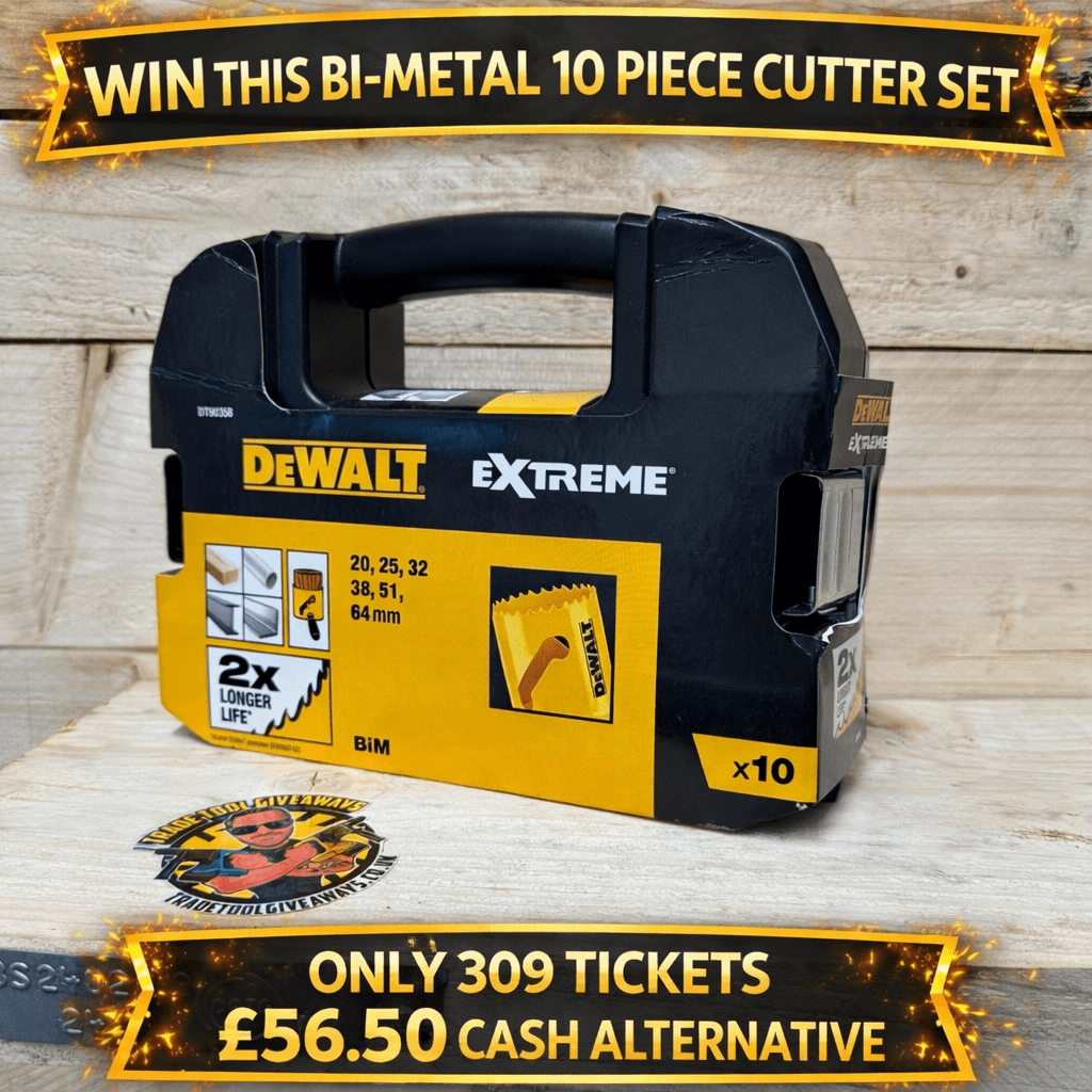 This competition is open to UK residents aged 18 or over. You may enter this competition up to 35 times. You will be randomly allocated ticket number(s) when ordering and will receive an email confirmation. The total amount of tickets for this competition is (309). If all tickets do not sell out, the draw will happen on January 20, 2026 regardless. You must answer the competition question correctly to be entered into the live draw. Incorrect entries will not be notified or entered into the live draw. You may enter the competition online, or for free by post by sending your entry to Trade Tool Giveaways on a postcard. You must have an account on Trade Tool Giveaways for your entry to be processed. All details on your entry MUST correspond to the details on your account to receive the order confirmation and ticket number. Postal entries received without a registered account cannot be processed. The live draw will take place on Trade Tool Giveaways Facebook page using Google’s random number generator to select the winning ticket number from all Entrants. This competition is in no way sponsored, endorsed, administered by or associated with Facebook, Apple or Google. By entering the competitions, Entrants agree that neither Facebook, Apple nor Google have any liability and are not responsible for the administration or promotion of this competition.