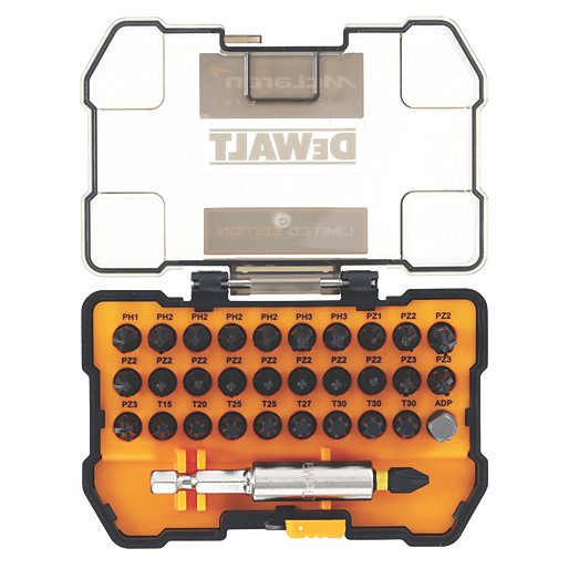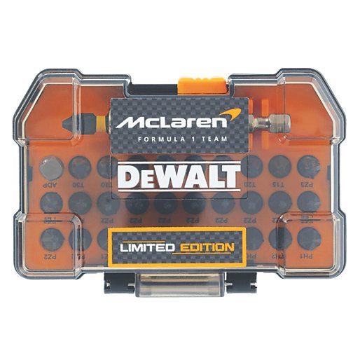 DEWALT MCLAREN F1 TEAM 6.35MM HEX SHANK MIXED IMPACT TORSION SCREWDRIVER BIT SET 32 PIECES
