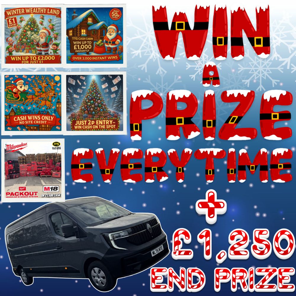 This competition is open to UK residents aged 18 or over. You may enter this competition up to 7500 times. You will be randomly allocated ticket number(s) when ordering and will receive an email confirmation. The total amount of tickets for this competition is (149999). If all tickets do not sell out, the draw will happen on December 19, 2025 regardless. You must answer the competition question correctly to be entered into the live draw. Incorrect entries will not be notified or entered into the live draw. You may enter the competition online, or for free by post by sending your entry to Trade Tool Giveaways on a postcard. You must have an account on Trade Tool Giveaways for your entry to be processed. All details on your entry MUST correspond to the details on your account to receive the order confirmation and ticket number. Postal entries received without a registered account cannot be processed. The live draw will take place on Trade Tool Giveaways Facebook page using Google’s random number generator to select the winning ticket number from all Entrants. This competition is in no way sponsored, endorsed, administered by or associated with Facebook, Apple or Google. By entering the competitions, Entrants agree that neither Facebook, Apple nor Google have any liability and are not responsible for the administration or promotion of this competition.
