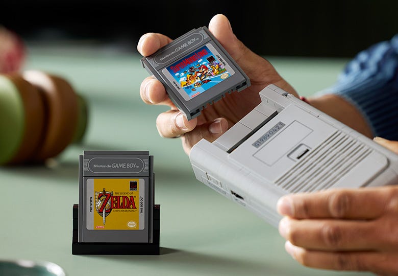 Customise your display – Includes interchangeable, brick-built The Legend of Zelda™: Link’s Awakening or Super Mario Land™ Game Boy™ Game Paks and lenticular screens, plus a Nintendo® start screen
