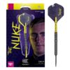 “The Luke Littler Generation One, designed alongside ‘The Nuke’ to his exact specifications and requirements. The 90% Tungsten range offers a multi-grip barrel profile, consisting of Dual Pixel Tip at the front and centre of the barrel providing a high level of grip and then finally a fine radial groove grip at the rear of the barrel for a more subtle feel. The barrel is then overlaid with Black PVD Performance coating and further re-machined to highlight the Dual Pixel Tip technology. The Range is then completed with Target Pro Grip Shafts, ‘The Nuke’ Signature Flights and Target SP Points.”