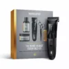 Accessories include: travel pouch, scissors, barber’s comb, styling guide.