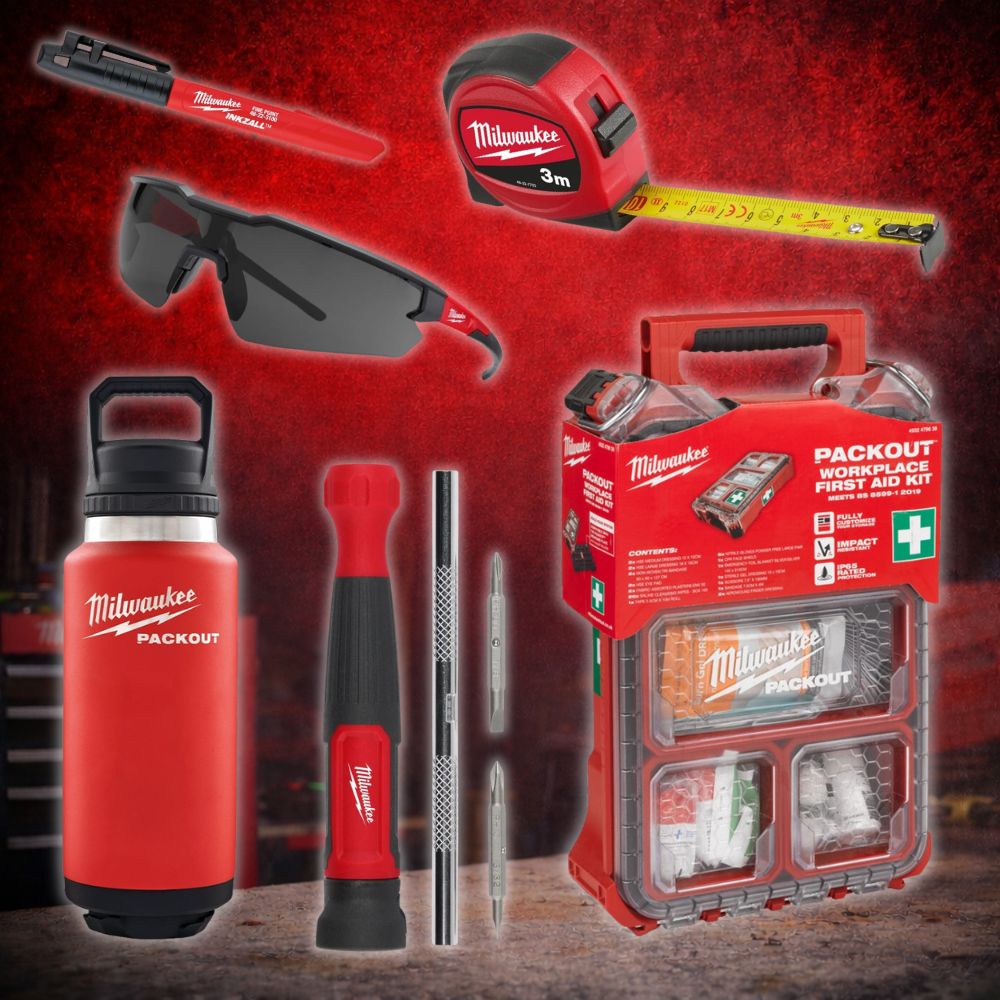 Auto Draw – Milwaukee PACKOUT Workplace First Aid Kit & 5 Piece Mixed Hand Tool Set with PACKOUT Bottle