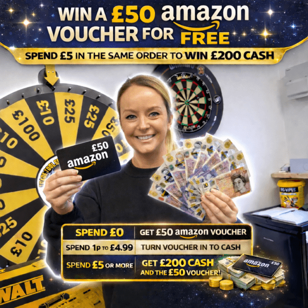 This competition is open to UK residents aged 18 or over. You may enter this competition up to 10000 times. You will be randomly allocated ticket number(s) when ordering and will receive an email confirmation. The total amount of tickets for this competition is (149999). If all tickets do not sell out, the draw will happen on March 8, 2026 regardless. You must answer the competition question correctly to be entered into the live draw. Incorrect entries will not be notified or entered into the live draw. You may enter the competition online, or for free by post by sending your entry to Trade Tool Giveaways on a postcard. You must have an account on Trade Tool Giveaways for your entry to be processed. All details on your entry MUST correspond to the details on your account to receive the order confirmation and ticket number. Postal entries received without a registered account cannot be processed. The live draw will take place on Trade Tool Giveaways Facebook page using Google’s random number generator to select the winning ticket number from all Entrants. This competition is in no way sponsored, endorsed, administered by or associated with Facebook, Apple or Google. By entering the competitions, Entrants agree that neither Facebook, Apple nor Google have any liability and are not responsible for the administration or promotion of this competition.