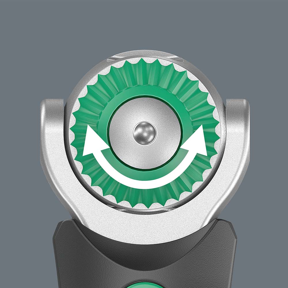 Fine tooth reversible ratchet (72 teeth) for a low return angle of only 5°