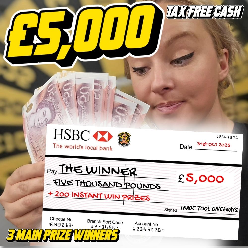 This competition is open to UK residents aged 18 or over. You may enter this competition up to 1000 times. You will be randomly allocated ticket number(s) when ordering and will receive an email confirmation. The total amount of tickets for this competition is (15000). If all tickets do not sell out, the draw will happen on October 7, 2025 regardless. You must answer the competition question correctly to be entered into the live draw. Incorrect entries will not be notified or entered into the live draw. You may enter the competition online, or for free by post by sending your entry to Trade Tool Giveaways on a postcard. You must have an account on Trade Tool Giveaways for your entry to be processed. All details on your entry MUST correspond to the details on your account to receive the order confirmation and ticket number. Postal entries received without a registered account cannot be processed. The live draw will take place on Trade Tool Giveaways Facebook page using Google’s random number generator to select the winning ticket number from all Entrants. This competition is in no way sponsored, endorsed, administered by or associated with Facebook, Apple or Google. By entering the competitions, Entrants agree that neither Facebook, Apple nor Google have any liability and are not responsible for the administration or promotion of this competition.