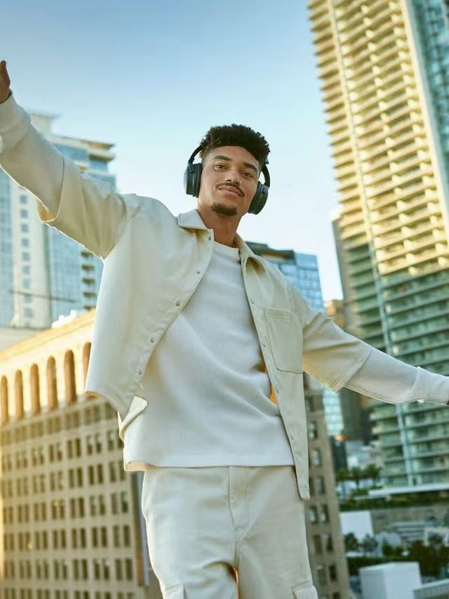 You decide how much of the outside world you let in. These over-ear headphones come equipped with Quiet and Aware Modes that let you toggle between full noise cancelling or full awareness of your surroundings. Or better yet, create your own custom mode and have the power to adjust the noise cancellation as you see fit, add Wind Block to tune out breezy environments and revisit the custom setting at any time.