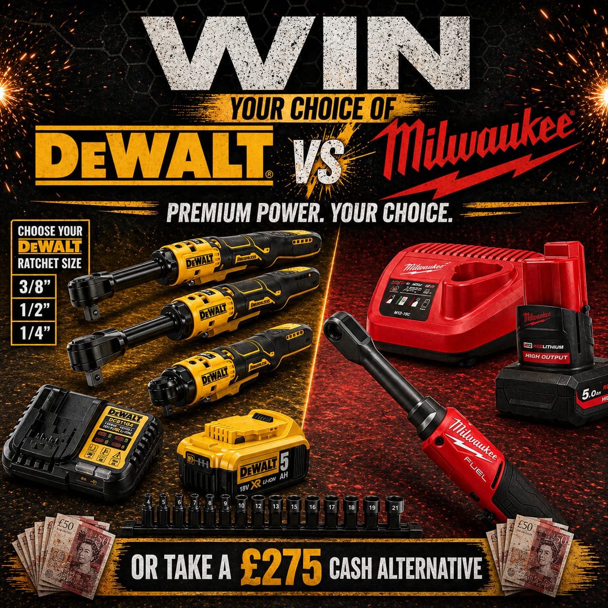 This competition is open to UK residents aged 18 or over. You may enter this competition up to 500 times. You will be randomly allocated ticket number(s) when ordering and will receive an email confirmation. The total amount of tickets for this competition is (4999). If all tickets do not sell out, the draw will happen on May 11, 2026 regardless. You must answer the competition question correctly to be entered into the live draw. Incorrect entries will not be notified or entered into the live draw. You may enter the competition online, or for free by post by sending your entry to Trade Tool Giveaways on a postcard. You must have an account on Trade Tool Giveaways for your entry to be processed. All details on your entry MUST correspond to the details on your account to receive the order confirmation and ticket number. Postal entries received without a registered account cannot be processed. The live draw will take place on Trade Tool Giveaways Facebook page using Google’s random number generator to select the winning ticket number from all Entrants. This competition is in no way sponsored, endorsed, administered by or associated with Facebook, Apple or Google. By entering the competitions, Entrants agree that neither Facebook, Apple nor Google have any liability and are not responsible for the administration or promotion of this competition.