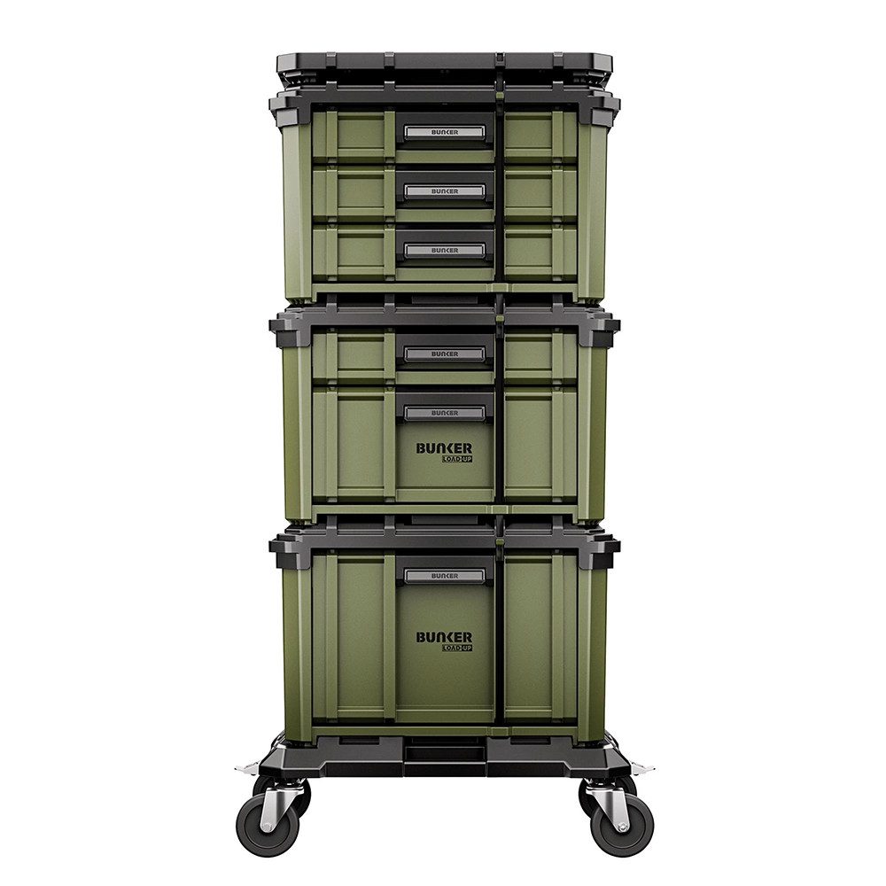 The BUNKER Load-Up 5 Piece Stacking Storage System is a complete, ready-built mobile workstation designed to deliver professional organisation, security and mobility in one powerful solution.