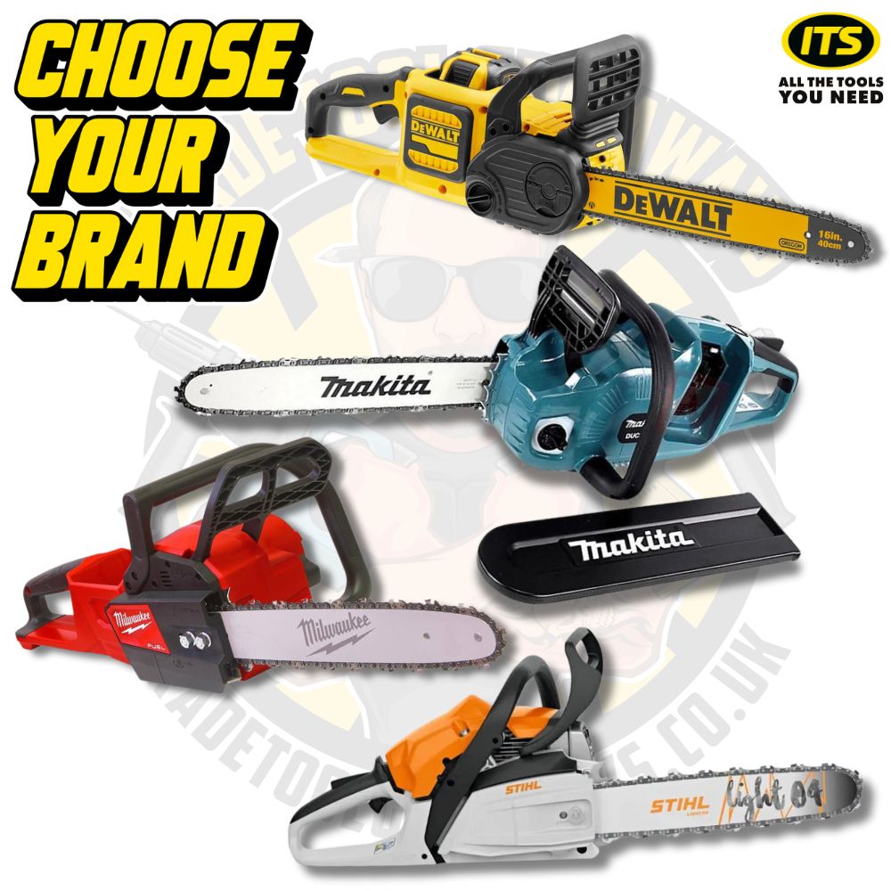 The powerful 1100w brushless motor producing a 0-20m/sec chain speed with variable speed control trigger, constant speed control & lock-off lever.