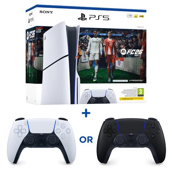 Includes: EA SPORTS FC 26 full-game voucher*, Wireless controller, 1TB SSD, Disc Drive****, 2 Horizontal Stand Feet, HDMI® cable, AC power cord, USB cable, Printed materials, ASTRO’s PLAYROOM (Pre-installed game)