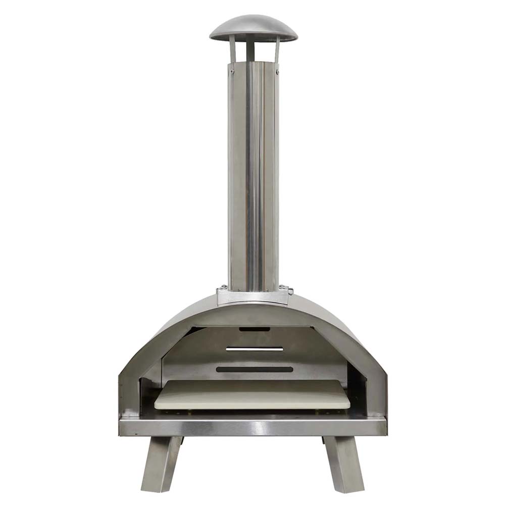 The oven has a cordierite pizza stone included that absorbs heat quickly and is ready to cook in just 10-15 minutes. A 14in pizza can cook in around 60seconds. A thermometer on the front will let you know once the oven has hit the desired temperature. The hinged legs, removable chimney and removable smoking cap make this a perfect addition to any garden and family event.