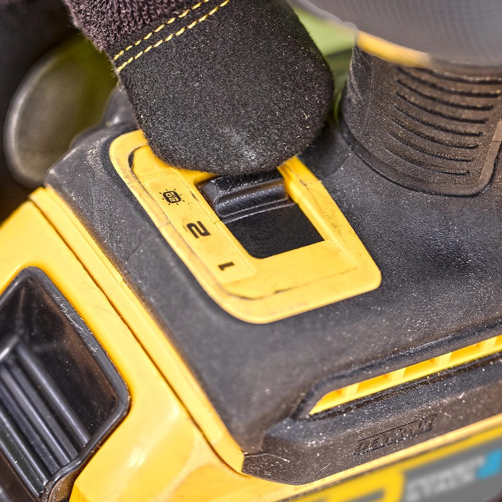 The DCF870 also offers an intuitive 4 mode select switch as well as flashlight mode which allows the 9 LEDs to be lit for 20 minutes. Once pressed, the “20 min” icon is lit. When deactivated, standard 20 second is active.