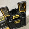 In terms of storage, this open tote follows in the footsteps of other recent Dewalt ToughSystem 2.0’half width’ cases.  Ideal for carrying huge range of power tools, hand tools and much more, the tote include ToughSystem connectivity on the base side, so that you can easily connect to others within the range thanks to the Auto-Latch Side Staking latches.