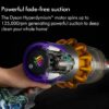 Your floors may look clean, but that’s only half the story. This Dyson V15 Detect’s illuminated soft cleaner head lights up the floor to show up hidden dust and dirt. Now you can be sure you’ve not missed a spot. Ground in dirt can be stubborn, but it’s no match for the powerful Dyson Hyperdynium motor. It spins extra fast to produce more suction, without adding any extra weight or bulk. It’s intelligent too. It automatically adjusts the power when it comes across higher volumes of dust. You get a deeper clean and you won’t have to go over the same spot multiple times.
