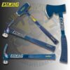 Fully forged in one piece of steel for durability and strength. Designed with a handy tent stake puller and shock reduction grip which offers comfort, longevity and reduces impact vibrations by up to 70%. Blue powder-coating for rust resistance and added protection.
