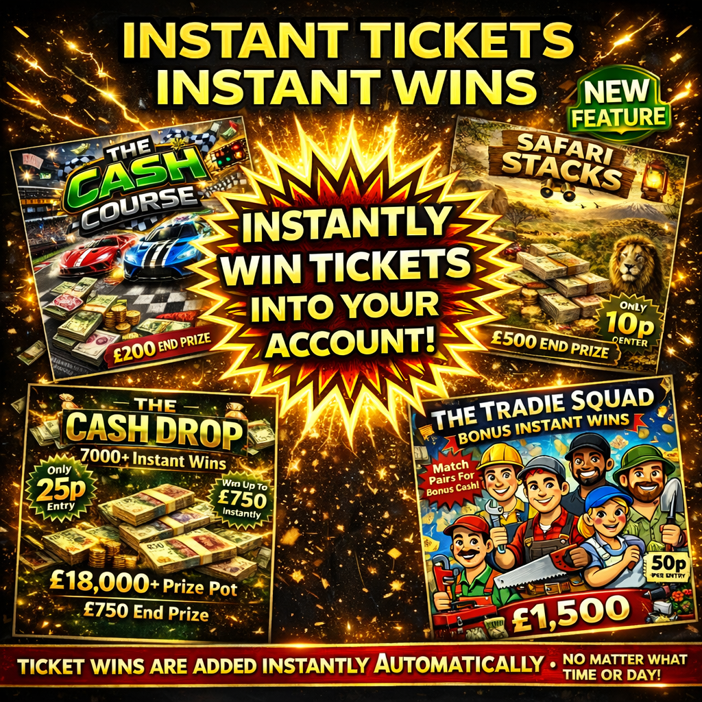 FOR ALL TICKET INSTANT WINS, THESE ARE NOW AUTOMATICALLY ADDED TO YOUR ACCOUNT. YOU WILL RECEIVE AN EMAIL WHEN TICKETS HAVE BEEN ALLOCATED TO YOUR ACCOUNT.