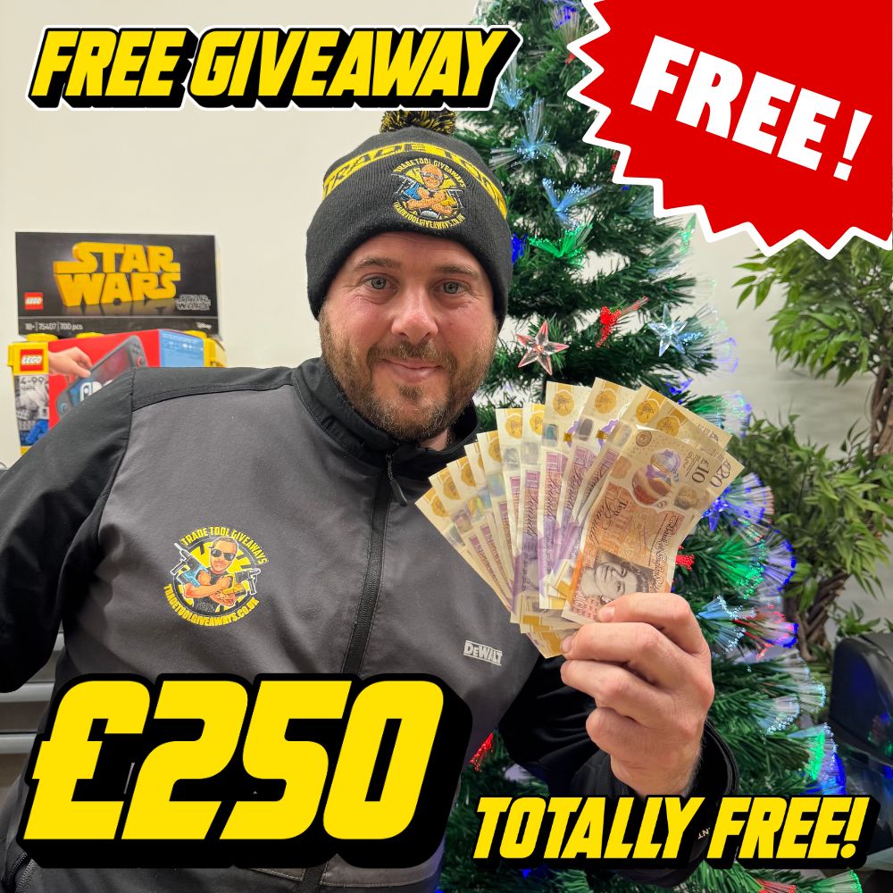 This competition is open to UK residents aged 18 or over. You may enter this competition up to 10 times. You will be randomly allocated ticket number(s) when ordering and will receive an email confirmation. The total amount of tickets for this competition is (10000). If all tickets do not sell out, the draw will happen on January 4, 2026 regardless. You must answer the competition question correctly to be entered into the live draw. Incorrect entries will not be notified or entered into the live draw. You may enter the competition online, or for free by post by sending your entry to Trade Tool Giveaways on a postcard. You must have an account on Trade Tool Giveaways for your entry to be processed. All details on your entry MUST correspond to the details on your account to receive the order confirmation and ticket number. Postal entries received without a registered account cannot be processed. The live draw will take place on Trade Tool Giveaways Facebook page using Google’s random number generator to select the winning ticket number from all Entrants. This competition is in no way sponsored, endorsed, administered by or associated with Facebook, Apple or Google. By entering the competitions, Entrants agree that neither Facebook, Apple nor Google have any liability and are not responsible for the administration or promotion of this competition.