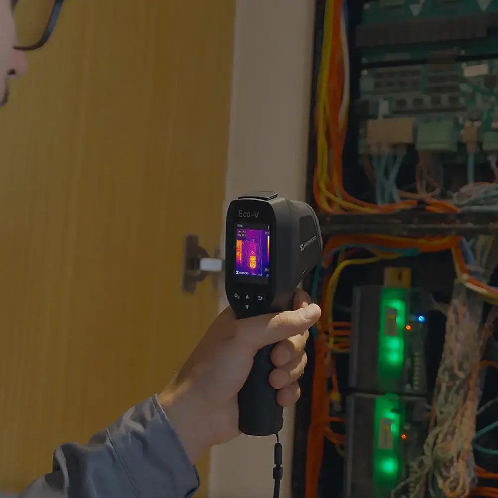 The Eco-V features a 96 × 96 pixel infrared sensor, enhanced by SuperIR technology to deliver images at a resolution of 240 × 240 pixels. This allows for clear visualization of temperature variations, making it easier to identify issues like electrical faults, insulation problems, or mechanical wear. With a thermal sensitivity of less than 50 mK, it can detect subtle temperature differences, providing detailed thermal images.