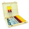 IRWIN Marples M373 8 piece chisel set in a wooden storage case. Heavy duty, bevel edge wood chisels made from hardened steel for a reliable and long lasting service and can be resharpened time and time again.
