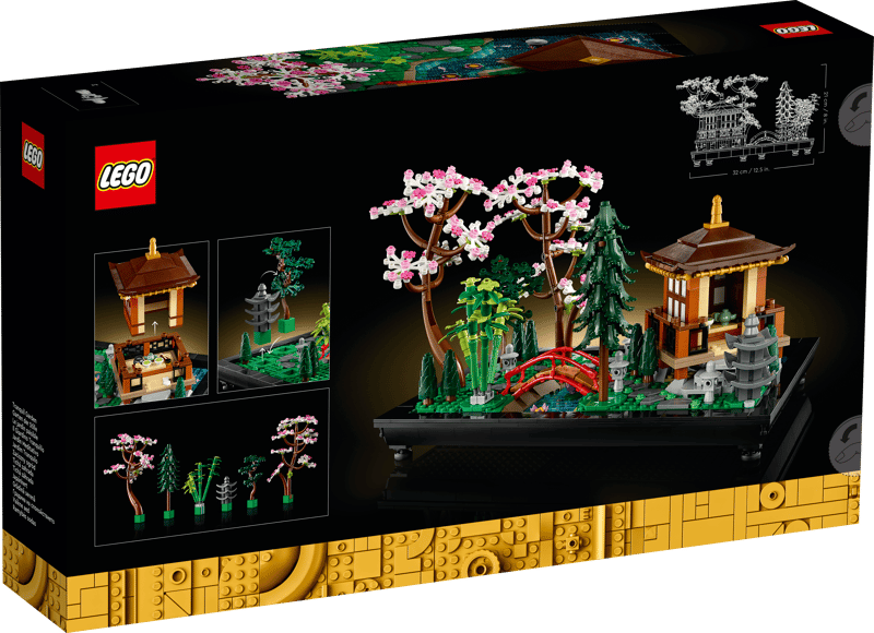Based on a traditional Japanese garden, this buildable model includes an arched bridge, stream, koi carp, lotus flowers, trees, rocks, stone lanterns and a pavilion with a detailed tea-ceremony room.