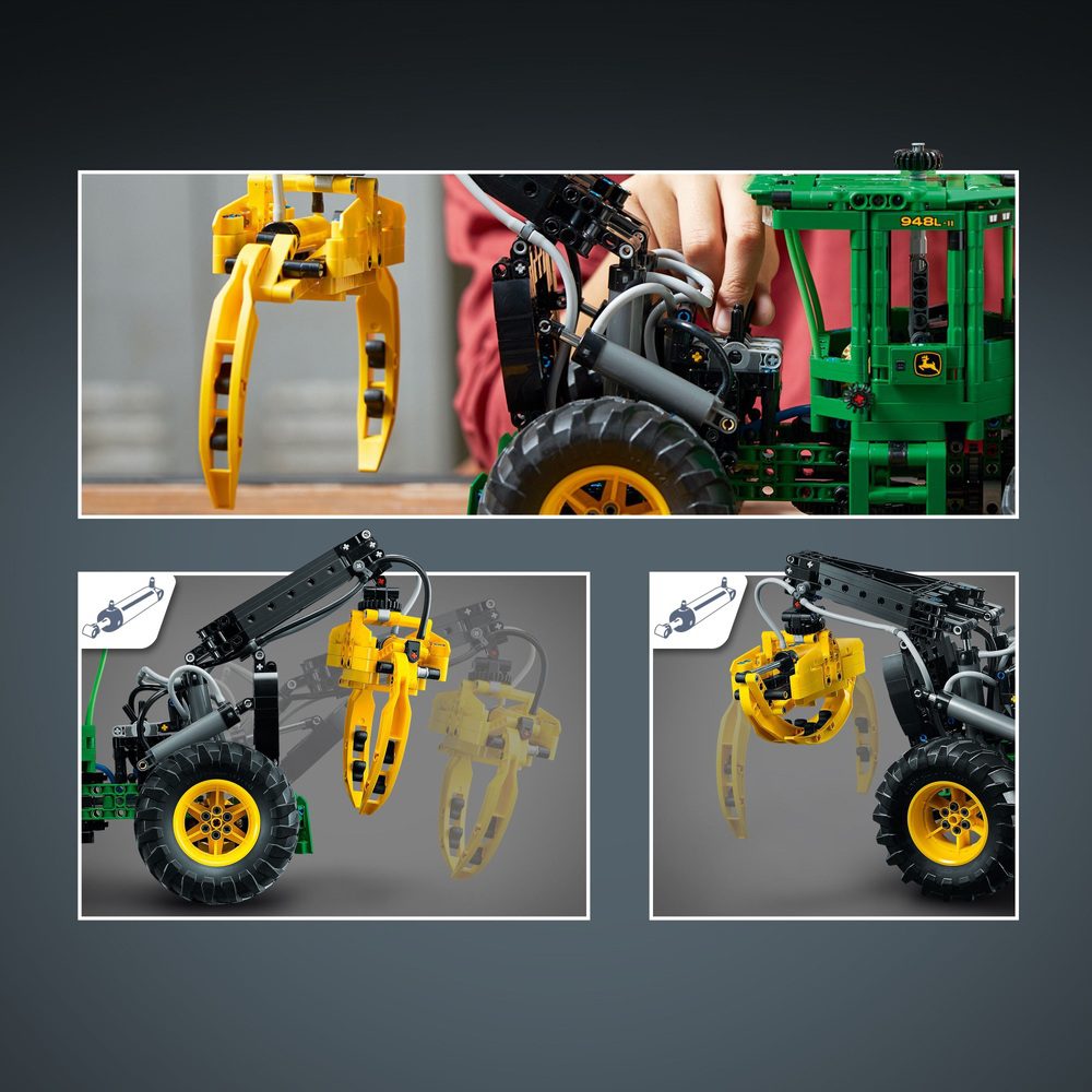 Kids with a passion for engineering and agriculture will love exploring all the features packed into this Technic John Deere 948L-II Skidder model building kit. Authentic functions of the construction vehicle toy include steering, 4-wheel drive and a working engine.