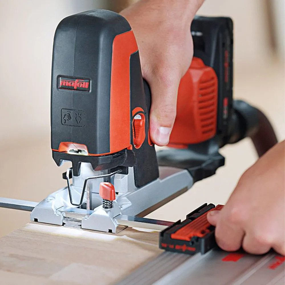 Impressively lightweight, the Mafell jigsaw delivers a variable no load speed of 750-3100 stokes per minute with a stroke length of 26mm.