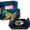 The design of the coin features the Hulk in his characteristic green colour, capturing his raw strength and intensity. The depiction of the Hulk is complemented by frosted motifs inspired by the character, adding depth and texture to the design. As an officially licensed Marvel product, the coin carries the approval and authenticity of the Marvel brand. The obverse side of the coin features the Public Seal of Niue, the issuing country, engraved onto it. Additionally, each coin comes with a Certificate of Authenticity and a unique serial number.