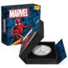 Licensed by Marvel, this 2023 Spider-Man 1oz proof silver coin has a unique number which can be found on the Certificate of Authenticity which is included in a collector’s box lined with black velvet.