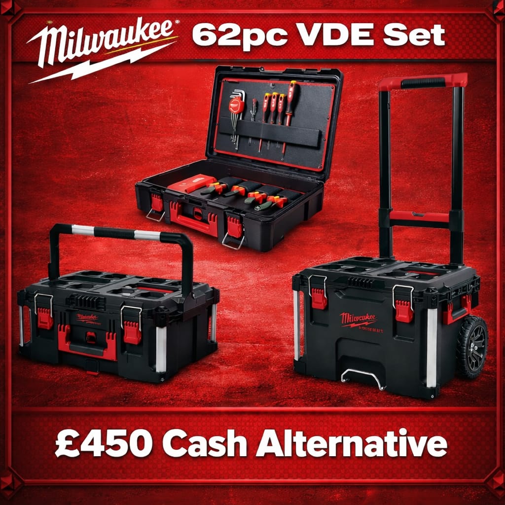 This competition is open to UK residents aged 18 or over. You may enter this competition up to 600 times. You will be randomly allocated ticket number(s) when ordering and will receive an email confirmation. The total amount of tickets for this competition is (5999). If all tickets do not sell out, the draw will happen on March 4, 2026 regardless. You must answer the competition question correctly to be entered into the live draw. Incorrect entries will not be notified or entered into the live draw. You may enter the competition online, or for free by post by sending your entry to Trade Tool Giveaways on a postcard. You must have an account on Trade Tool Giveaways for your entry to be processed. All details on your entry MUST correspond to the details on your account to receive the order confirmation and ticket number. Postal entries received without a registered account cannot be processed. The live draw will take place on Trade Tool Giveaways Facebook page using Google’s random number generator to select the winning ticket number from all Entrants. This competition is in no way sponsored, endorsed, administered by or associated with Facebook, Apple or Google. By entering the competitions, Entrants agree that neither Facebook, Apple nor Google have any liability and are not responsible for the administration or promotion of this competition.