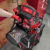 Despite its reinforced edges, metal rings, and spring-steel hardware adding serious structural strength, Milwaukee hasn’t forgotten user comfort. The bag features an ergonomic carry handle and a padded shoulder strap, making it feel surprisingly light even when fully loaded.