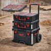It’s more than just a container. The PACKOUT system’s modular design means this trolley box is your mobile base station – click and stack other PACKOUT units securely on top to build the custom setup your workflow demands.