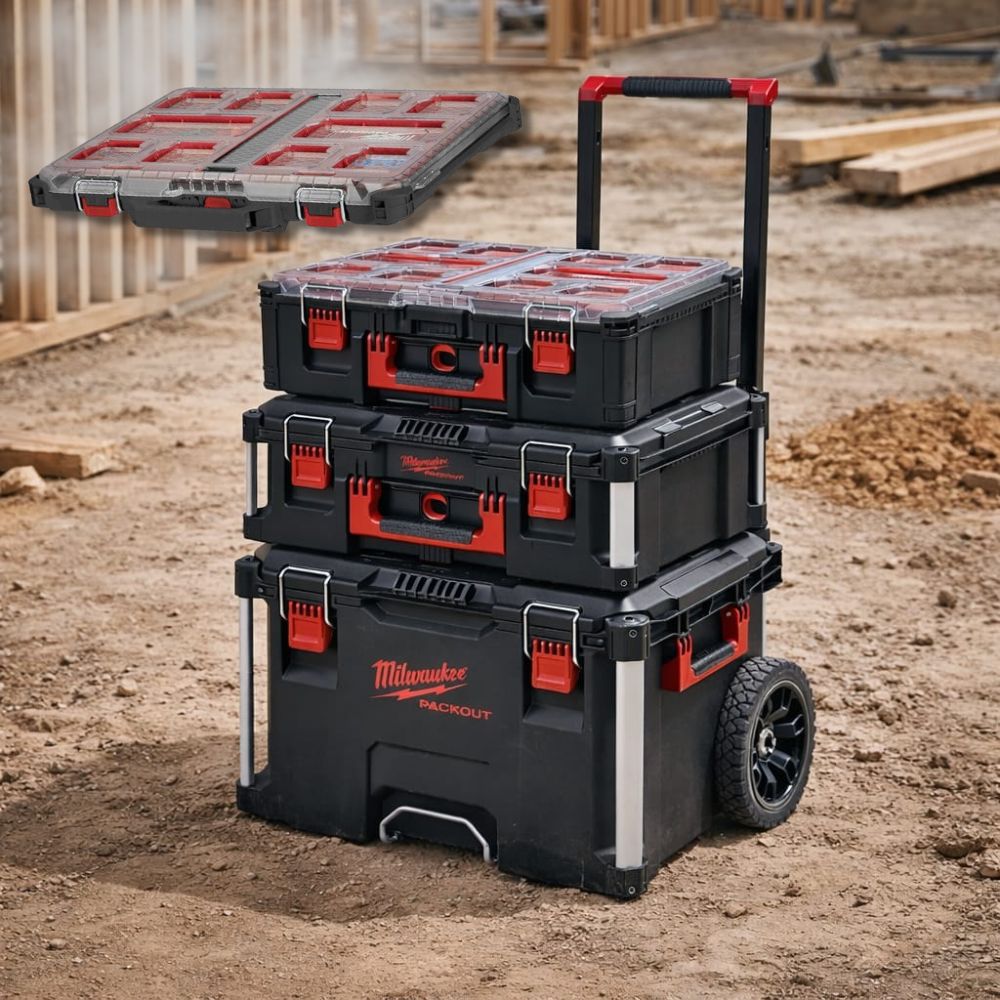 Milwaukee PACKOUT Large Trolley Box, Large Box, Deep Organiser & Slim Organiser