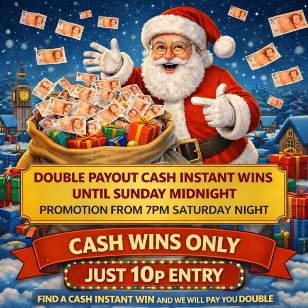 ENDING TONIGHT!!! ⏰ Instant Wins Promo 🎰 Win DOUBLE CASH Instantly On Selected Comps!💷💷 (From Sat 3rd Jan 19:00pm - Sun 4th Jan 23:59pm)
