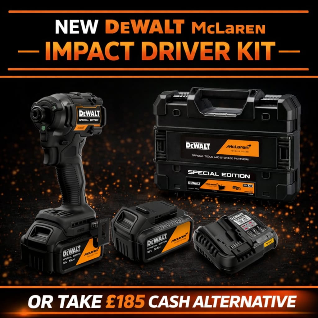 Designed as part of the exciting DEWALT x McLaren F1 Team limited-edition series, this impact driver delivers professional-grade power in a compact, balanced package that’s ready for demanding construction, automotive, industrial or DIY tasks.