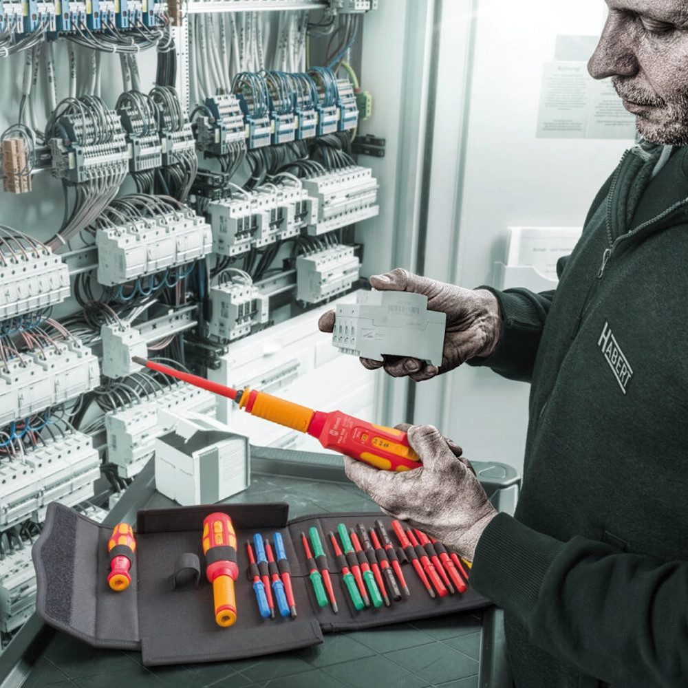 The 20 VDE blades included in this set, each 157 mm in length, offer reduced shaft diameters for accessing deeply recessed or spring-loaded screws in terminal blocks, switches, and relays. The blades feature Weraβs Take it easy tool finder system, with colour coding and laser-engraved sizing to make tool selection quick and error-free.
